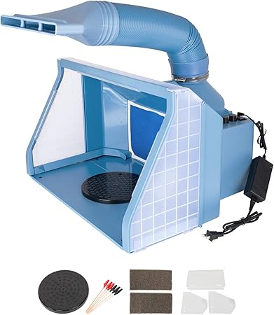 Exhaust fan for paint spray booth. Tube-axial is the best fan to be used on the exhaust of the booth because they are designed to pull the air. Fans entirely of stainless steel are also available. For smaller projects you can make your own simple spray paint booth with a box and a pair of scissors.