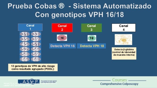 Esta prueba permite identificar los tipos HPV 16 y HPV 18 además de detectar el resto de los tipos virales de HPV de alto riesgo 31 33 35 39 45 51 52 56 58 59 66 y.
