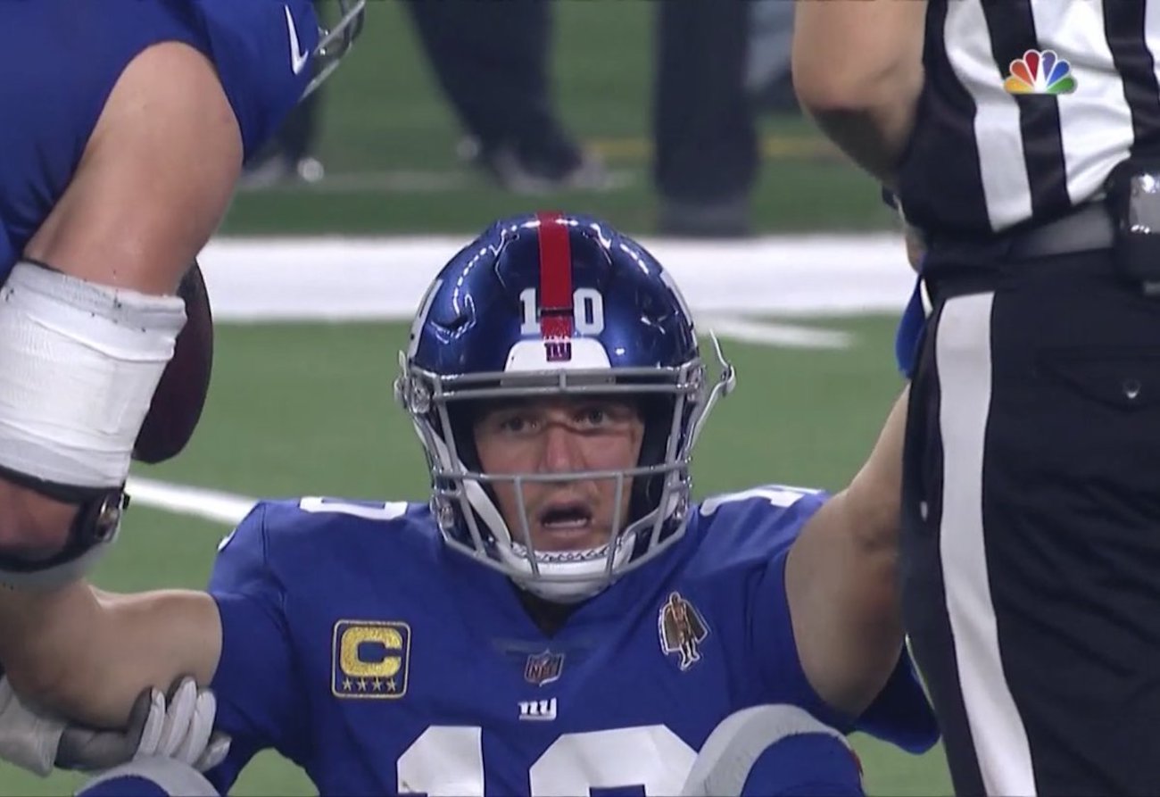 Sure the Cowboys beat the Giants 20. Memes of Eli Mannings face went viral after the New York Giants quarterback was benched. Eli Mannings facial expression is priceless after the sack by Antwaun Woods.