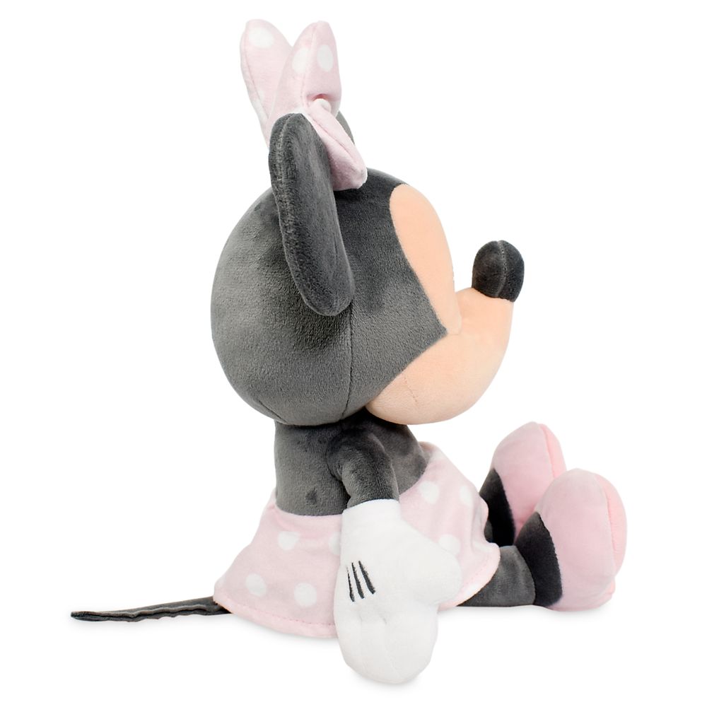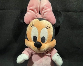 Baby minnie mouse stuffed animal. Description Welcome home baby giftMinnie Mouse Soft toy is blackwhite and pink velourEmbroidered face makes this minnie plush safe for any ageMeasures 15 and 10 while sittingMakes great company for your little one and promotes self soothing. Her total length is 15 and she sits 10 tall. Ship to an address.