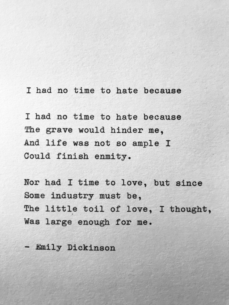 Going to order another paper later this month. That doesnt mean however that I dont read and appreciate love poems by Emily Dickinson. The wonders of nature the identity of the self death and immortality and love.