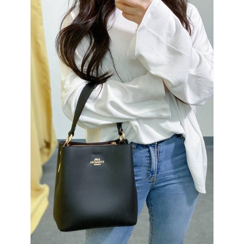 Em até 6x sem juros. - Does not comes with dustbag - Does not comes with box - Polished pebble leather - Center zip compartment - Snap closure fabric lining - Handle with 8 drop - Detachable strap with 20 12 drop for shoulder or crossbody wear - 10 14 L x 10 H x 5 W. Get the best deals on coach bucket bag leather and save up to 70 off at Poshmark now.